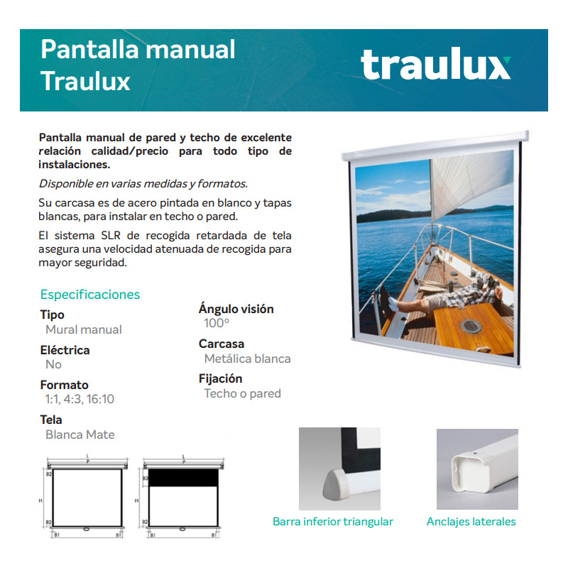 PANTALLA DE PROYECCIÓN TRAULUX mural manual de 203 X 153 cm. de excelente relación calidad/precio para todo tipo de instalaciones.