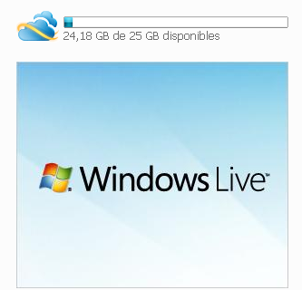 3.Windows Live Skydrive ofrece una cantidad de espacio impresionante (25 GB), aunque no permita subir ficheros individuales con un tamaño mayor que 50 MB. Se accede a través de Windows Live u Hotmail. También ofrece ahora un servicio de sincronización, con un máximo de 5 GB.